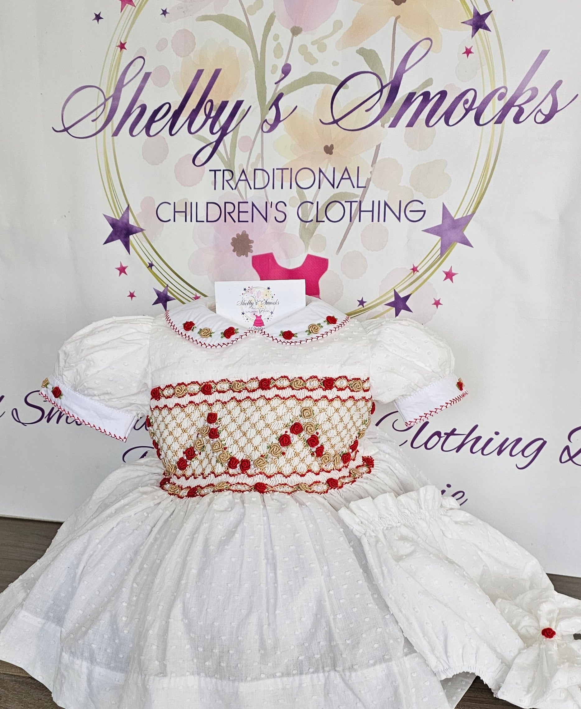 Red & Gold Garland Smock DRESS LAST 1 AGE 3M